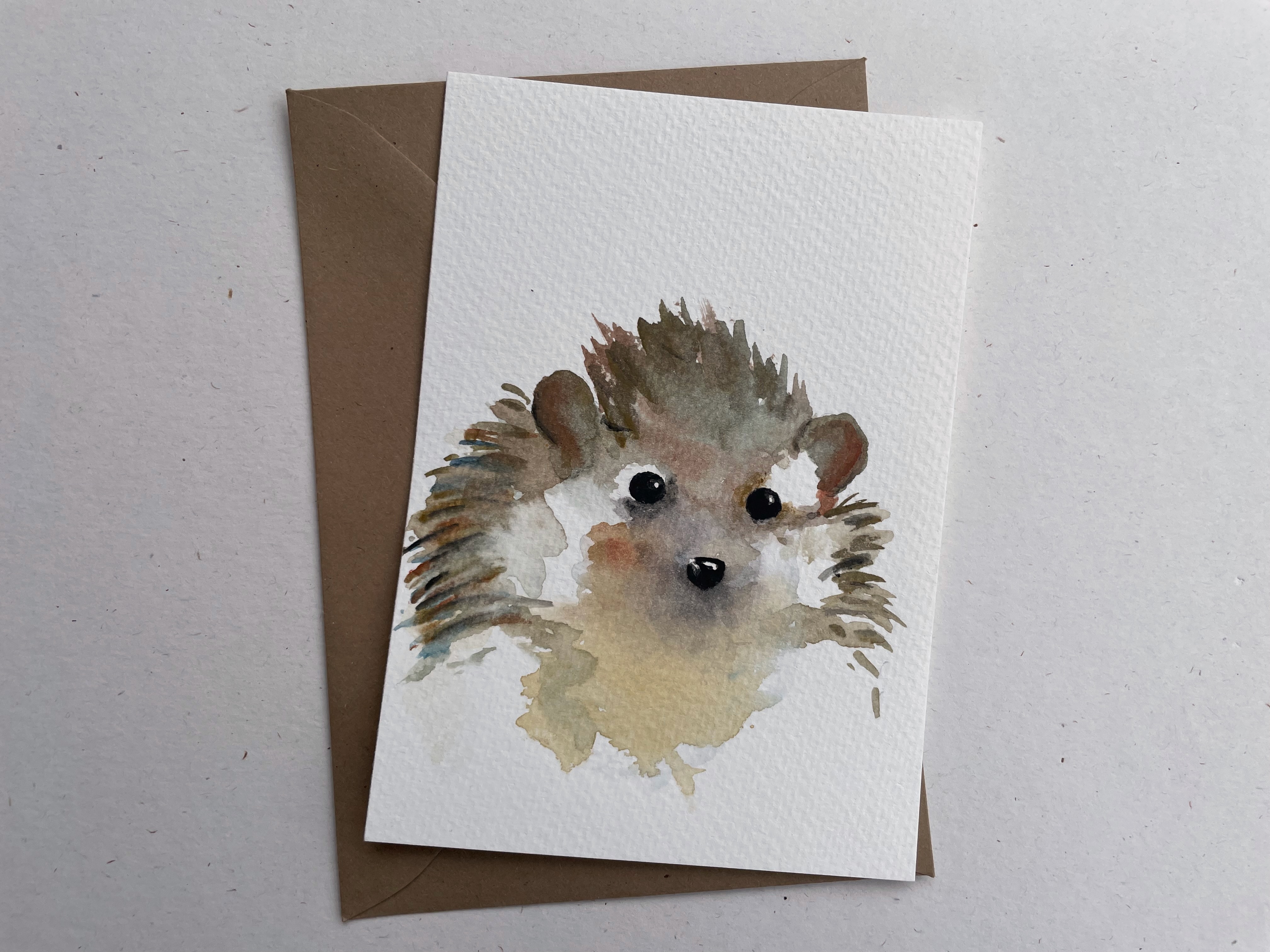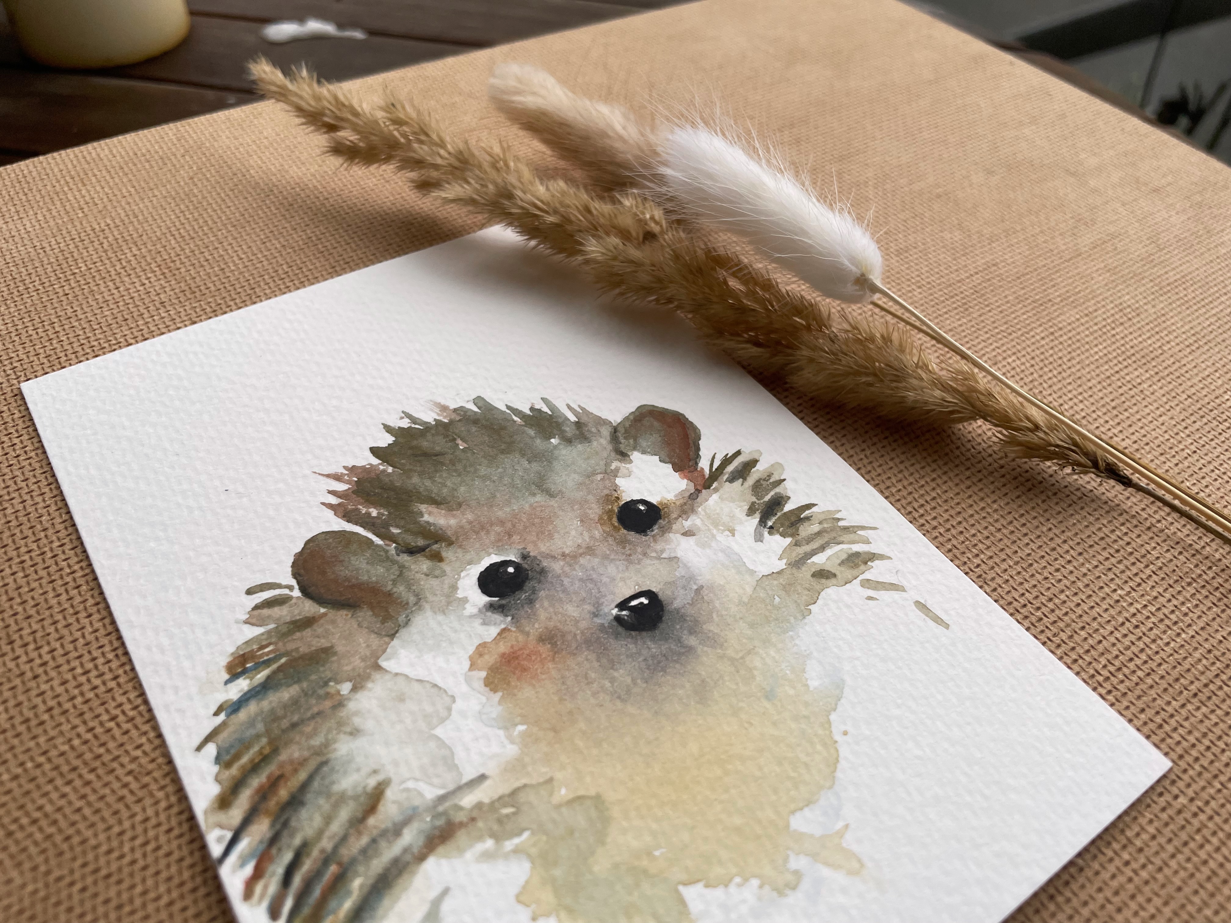 Ich habe diesen kleinen Igel mit viel Liebe entworfen und mit Aquarell Farben gemalt. Er wurde anschließend digitalisiert und auf echtem 300 g/m² Aquarellpapier gedruckt. Entstanden ist eine hochwertige Postkarte, die genau aussieht wie das Original.