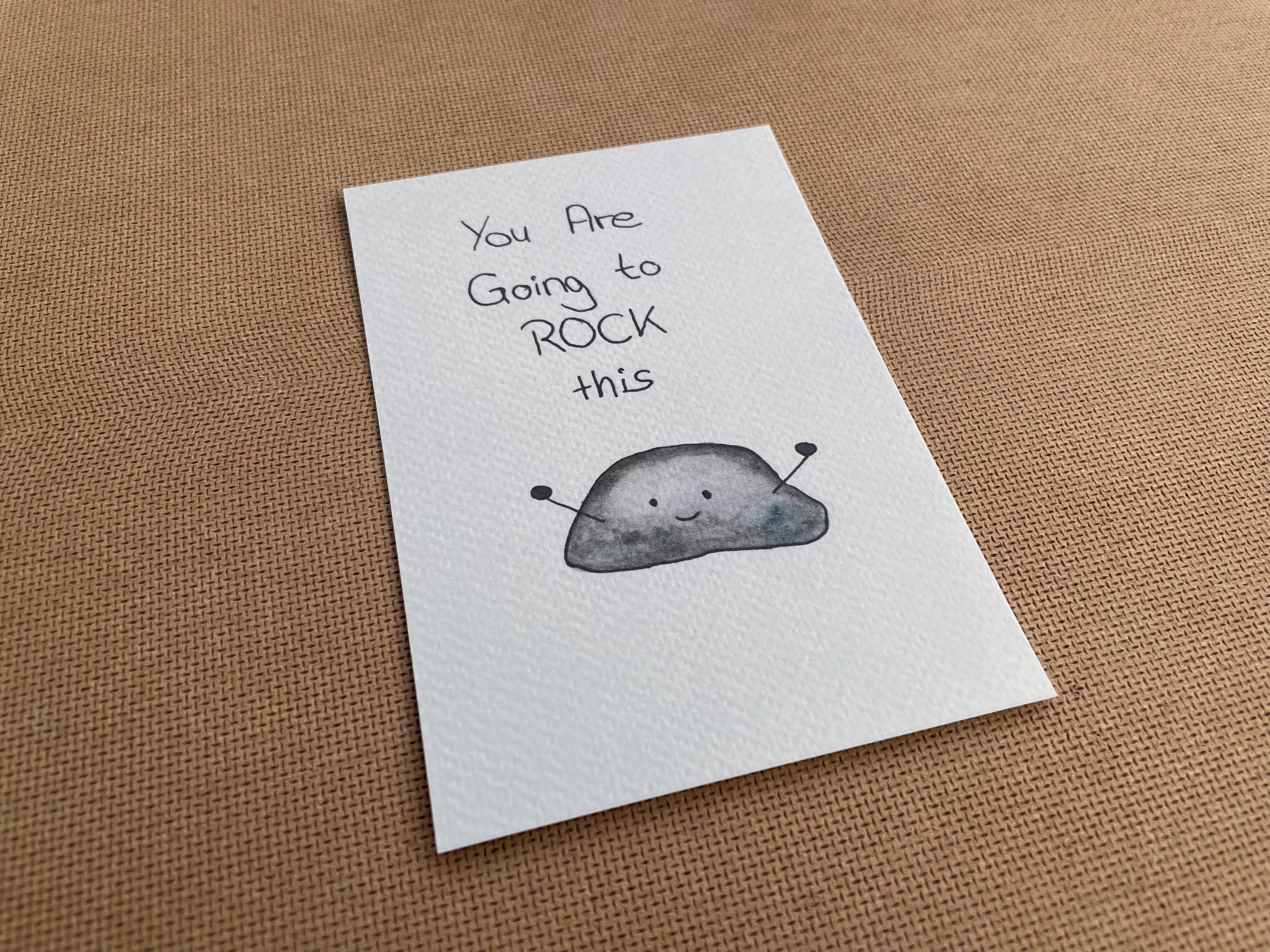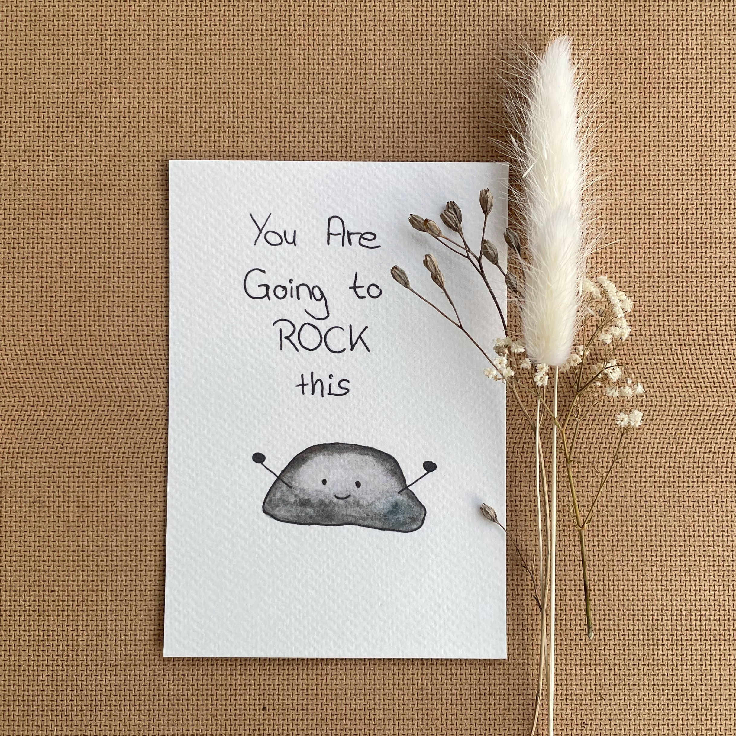 Sende deine metale Unterstützung auf liebevolle Art und Weise mit dieser Postkarte "You're going to rock this". Ich habe die Karte mit viel Liebe entworfen und mit Aquarell Farben gemalt. Sie wurden anschließend digitalisiert und auf echtem 300 g/m² Aquarellpapier gedruckt. Entstanden ist eine hochwertige Postkarte, die genau aussieht wie das Original. Mit dieser Karte kannst du Mut und deine guten Wünsche ganz individuell verschicken und Freude schenken. Mit dem Kauf jeder Karte werden 10 % des Gewinns an das Programm "Grundversorgung für Schulen" von Ingenieure ohne Grenzen e.V. gespendet und so die Lernbedingungen von Schüler*innen überall auf der Welt verbessert.